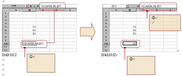 セルB5に10、B6に20、B7に30、が入力されている