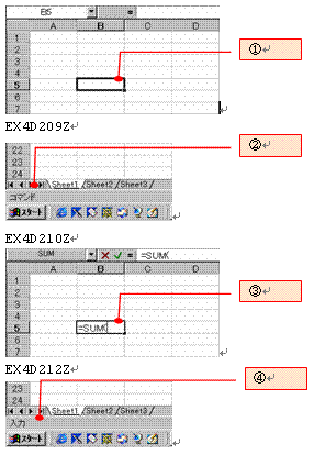Bキーボードの何かのキーを押す。ここでは、数式「=SUM(」を入力した