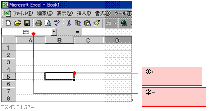 ここにセルポインタの位置するセル番地が表示される