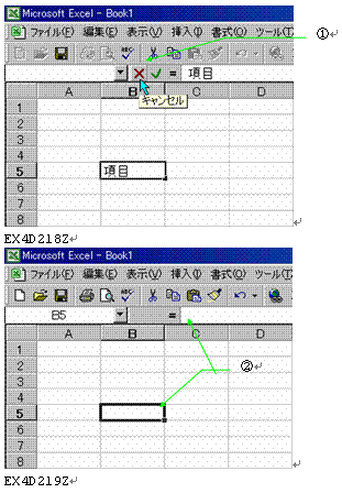 ●数式バーのばつ[×]とチェック[M]