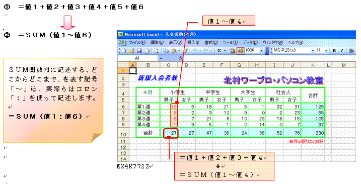 SUM関数を例にすると、次のような書き方になります。