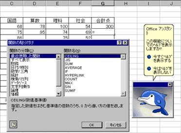 はじめて使うときはOfficeアシスタントが起動するので、「今はヘルプを表示しない」をクリック(図EX4A018Z[C])して閉じておきます。関数などを入力するとき、最初に=を入力する必要がありますが、関数ビルダを起動すると未入力の場合は「=」が自動入力されます(図[B])。