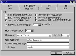 次に進める前に、セル番地の表示方法をA1形式に戻しておきましょう。オプションのダイアログボックスで[R1C1参照形式を使用する]に付けたチェックを消せば元のA1形式に戻ります。