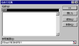集計表にデータを入力していない状態で式ビルダ(関数入力のダイアログボックス)を開くと、図[E][F]のようにセル範囲の入力欄は空白の状態になります。
