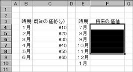 @セルの左下にマウスポインタを合わせる(+字型ポインタに変わる位置)