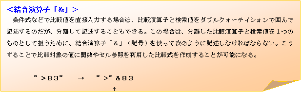 [フィルタ オプションの設定] コマンドでは、検索条件範囲に次の種類の比較検索条件を使用できます。