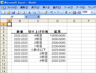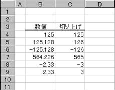 切り上げ :数値を小数点以下で切り上げた値を求める