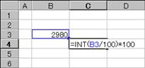 図「切り上げ値」 数式 =ROUNDUP(必要数値,−2)