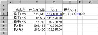 先の例で、発注数量を桁数を基準に計算しましたが、この関数を使うと任意の値を基準値にした値で切り上げることができます。先の例に使った発注数をそれぞれ変更して、CEILING関数を使った数式に変更してみましょう。数式は次のようになります。