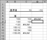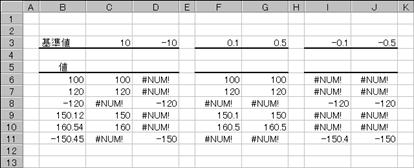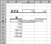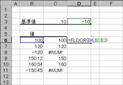この関数は、基準値の倍数に切り上げる働きをします。数値と基準値は同じ符号であることが必要です。たとえば、数値に−24を指定した場合、基準値に12(正数)を指定するとエラー#NUM!が返されます。