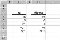 次の例は、桁数の指定を省いた方法で切り上げ値を求めています。いくつかの値を載せておくので、切り上げ結果を確認しておいてください。