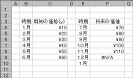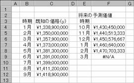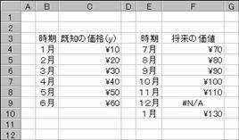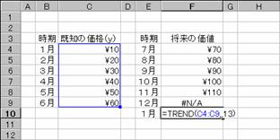 ここで紹介する関数は、直線的あるいは指数曲線的に変動する価格などの将来価値を予測するために利用します。配列数式で入力すると複数の結果を1つの数式で求めることができます。