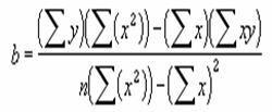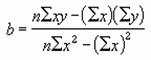 既知のx を省略すると、既知のy と同じサイズの {1,2,3,...} という配列であると見なされます。次の数式を使って m と b の値が計算されます。