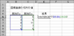 書式 INTERCEPT(既知のy, 既知のx)