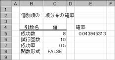 BINOMDIST 個別項の二項分布の確率を返します。