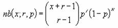失敗数、成功数に小数点以下の値を指定しても切り捨てられます。成功率<=0、または成功率>= 1である場合、あるいは(失敗数+成功数-1)<=0である場合、エラー値#NUM!が返されます。負の二項分布は次のように定義されます。