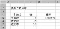 書式 NEGBINOMDIST(失敗数, 成功数, 成功率)