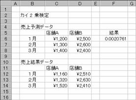 書式 CHITEST(実測値範囲, 期待値範囲)