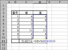 書式 DEVSQ(数値1, 数値2, ...)