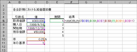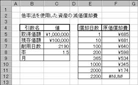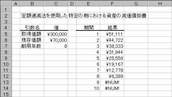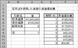 書式 DB(取得価額, 残存価額, 耐用年数, 期間, 月)