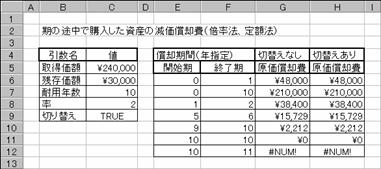 ●VDB関数 倍率逓減法(Variable Declining Balance)