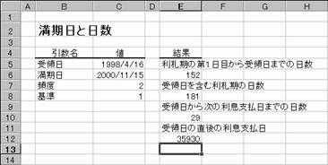 先の例をDDB関数で求めると次のようにな減価償却費になります。図Aは年単位で求めた場合、図Bは日単位で減価償却費を求めています。引数[耐用年数]を日数で指定した場合、引数[期間]の指定も日数で行うことが必要です。図A,Bともに入力する数式は同じで、項目名と引数の値だけを書き替えています。