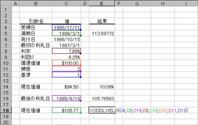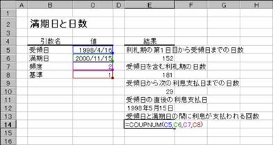 頻度に1、2、4、以外の数値を指定するとエラー値#NUM!が返されます。発行日、最初の利払日、受領日、頻度、基準、に整数以外の値を指定すると小数点以下が切り捨てられます。
