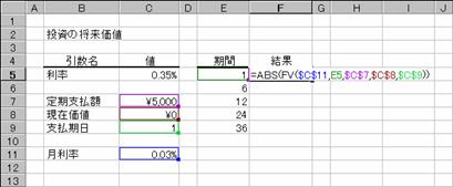 書式 ISPMT(利率, 期, 期間, 現在価値)
