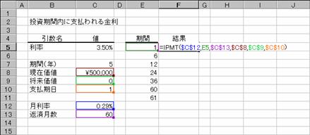 期 金利支払額を求める期を1〜期間の範囲で指定する。