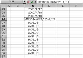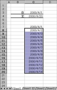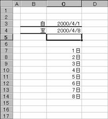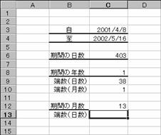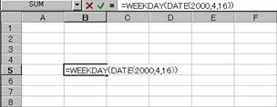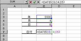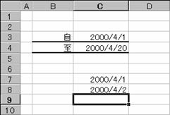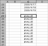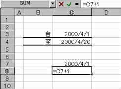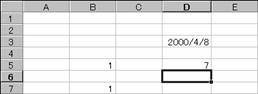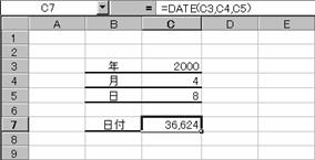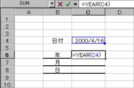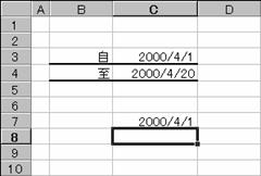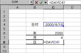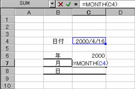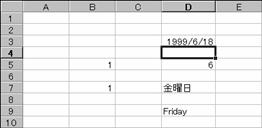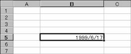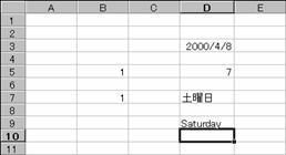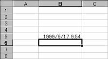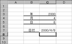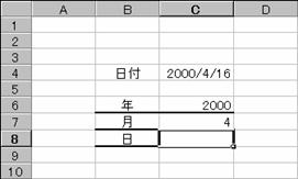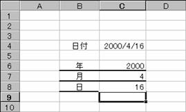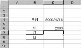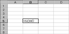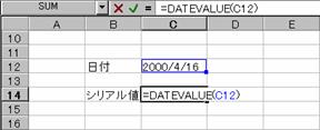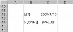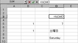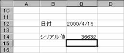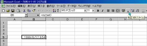 通常、セルに日付関数や日付形式のデータ(00/4/16など)を入力すると、表示形式が自動的に日付に設定されるので、日時が表示されます。ここでは、現在の日時のシリアル値を求めるNOW関数を入力したので、今現在の日時が表示されます。よって、操作した時点の日時が表示されるので、以下の画面と同じになりません。