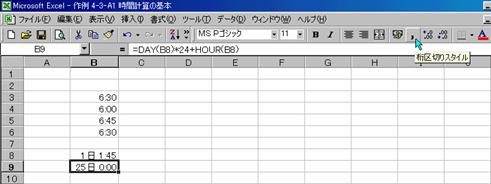 ●時間を計算するときは、表示形式を適切に設定することが必要。