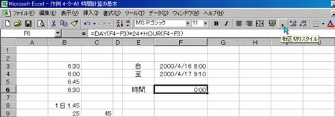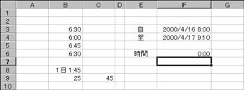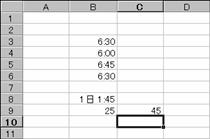 このままでは、ただ単に0または1を表示したにすぎません。この値を時間に加えるように、合計時間を表示するセルの式を変更します。