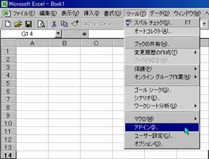 以上の操作で分析ツールを必要とする関数が使えるようになります。不要なときは、同じ操作でチェックマークを消します。Cの操作で[分析ツール]が見あたらないときは、セットアップのとき、組み込まなかったことが考えられるので、2の操作で組み込み操作を行ってから、もう一度、この操作を行ってください。