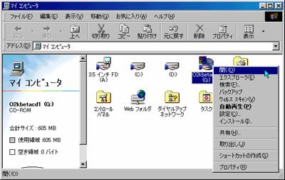 A CD−ROMドライブを右クリックしてショートカットメニューを開く