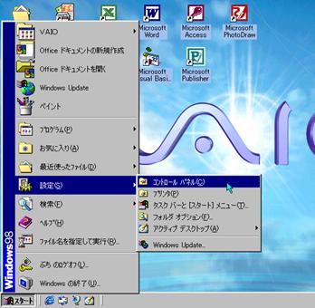 @[スタート]→[設定(S)]→[コントロールパネル]を選択する