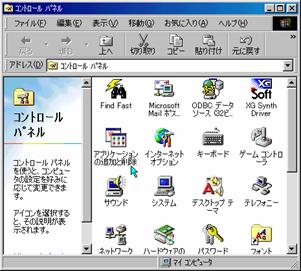 A アプリケーションの追加と削除のダイアログボックスが開く