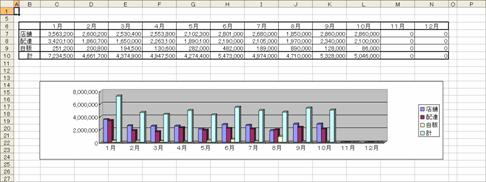 ●各月の集計値を集めてグラフにする-------------------------- 000