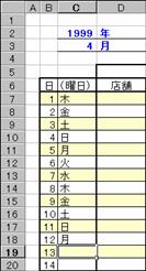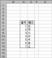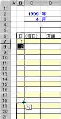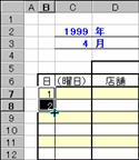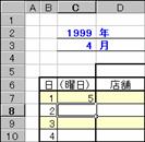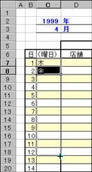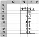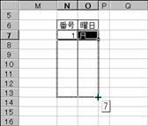 @先頭の番号「1」と曜日「日」をセルに入力する