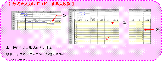 Cドラッグ&ドロップで下へ続くセルに複写する