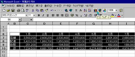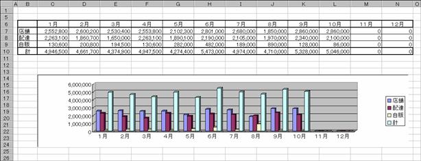 今回は、前回で作成した年間の集計表を元に、各月ごとに集計された売上額の年間グラフを作成する。