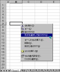 Cコピー先の先頭セルを右クリックしてショートカットメニューを開く