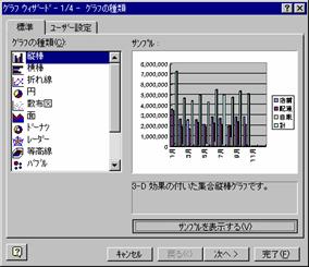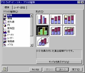 D形式を選択する(ここでは「3Dの集合縦棒グラフ」を選択)