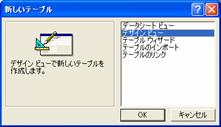 データベースウィンドウで[新規作成]を選択すると、[テーブルの新規作成]ダイアログボックスが開きます。 作例『002』
