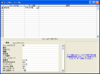 フィールド名 データ型 フィールドサイズ IME入力モード