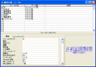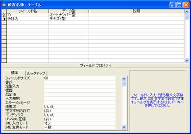 ●フィールドプロパティの設定(フィールドサイズ、IMEモード)