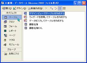 新しいテーブルの作成方法は、「@テーブルの作成方法」(38ページ)と「A顧客名簿テーブルを作る」(48ページ)で解説しましたが、手順をもう一度示しておきます。