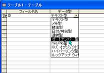 主キーはデータの重複を避けるための機能をもつので、ここではオートナンバー型を設定します。