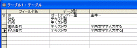 @必要なフィールドを作成し、フィールド名を入力してデータ型を指定する