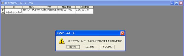 フィールドの表示幅を変更すると、テーブルを閉じるときに変更の保存確認のメッセージが表示されます。ここで、保存を行わないと変更が無効になり、フィールドの表示幅が変更前の状態に戻ります。