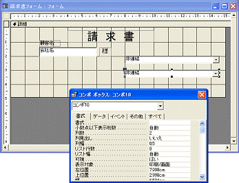 コンボボックスは、テキストボックスにプルダウン形式の一覧表を付加したような機能をもちます。ここでは、ウィザードを使って自動設定する方法で請求書フォームに挿入します。
